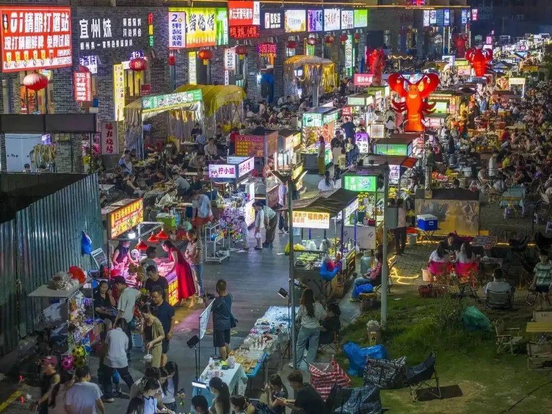 4月11日晚,广西梧州市长洲区红岭街道水云天夜市灯火璀璨、人头攒动。何华文摄